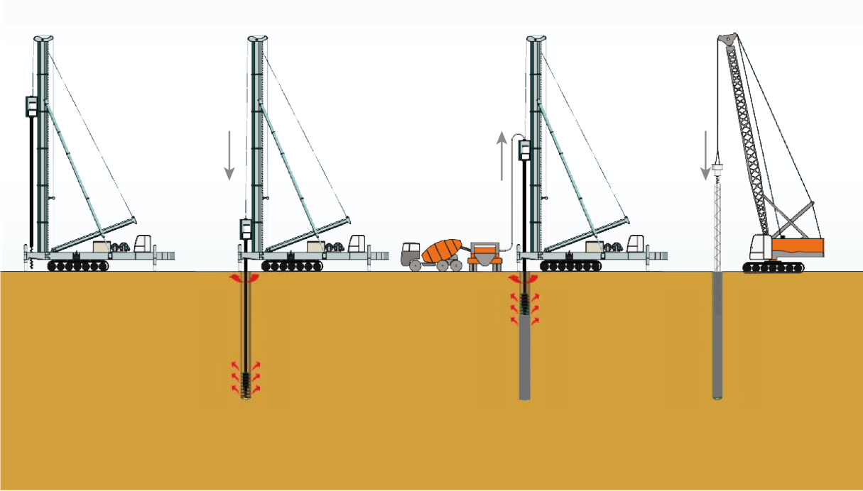 短螺旋擠土灌注樁(簡稱SDS樁)亦稱為雙向螺旋擠土灌注樁或雙向螺旋擠擴(kuò)樁,是采用大扭矩鉆機(jī)將短螺旋擠擴(kuò)鉆具強(qiáng)力旋入土層并將孔內(nèi)土體壓入孔壁以大幅提高承載力的一種先進(jìn)樁基技術(shù)。該型基樁屬于完全擠土型混凝土灌注樁,可應(yīng)用于樁基礎(chǔ),亦可應(yīng)用于復(fù)合地基中的有粘結(jié)強(qiáng)度的增強(qiáng)體。