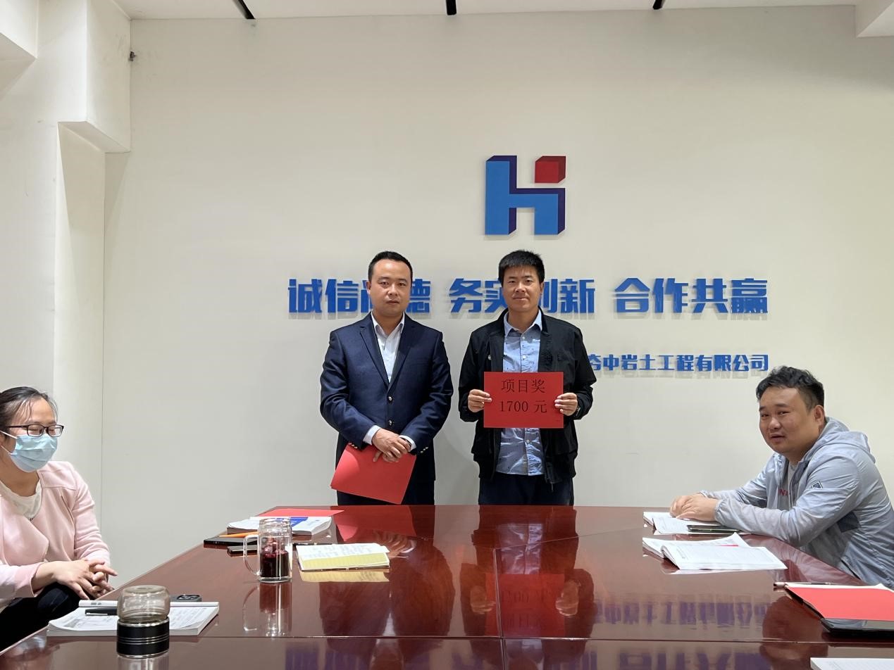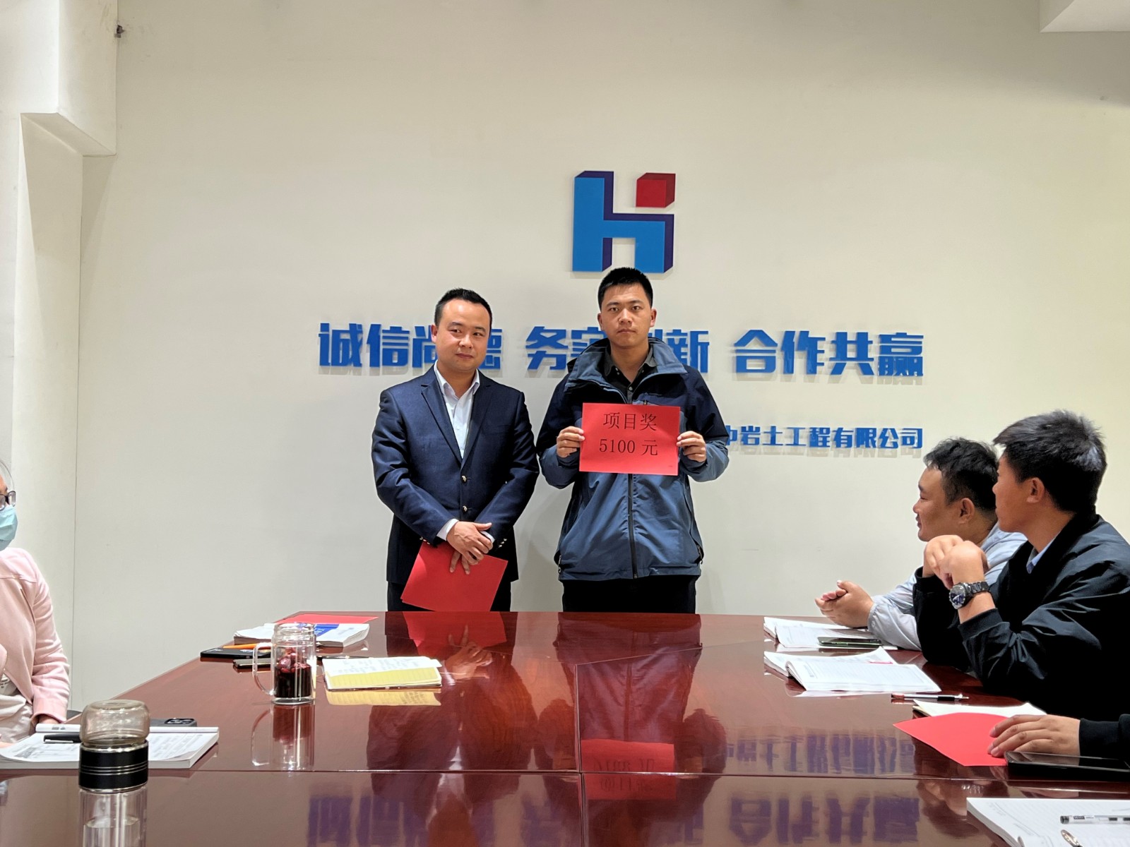 不忘初心,砥礪前行,夯中巖土2022年第一季度項目獎金頒發(fā)現(xiàn)場
