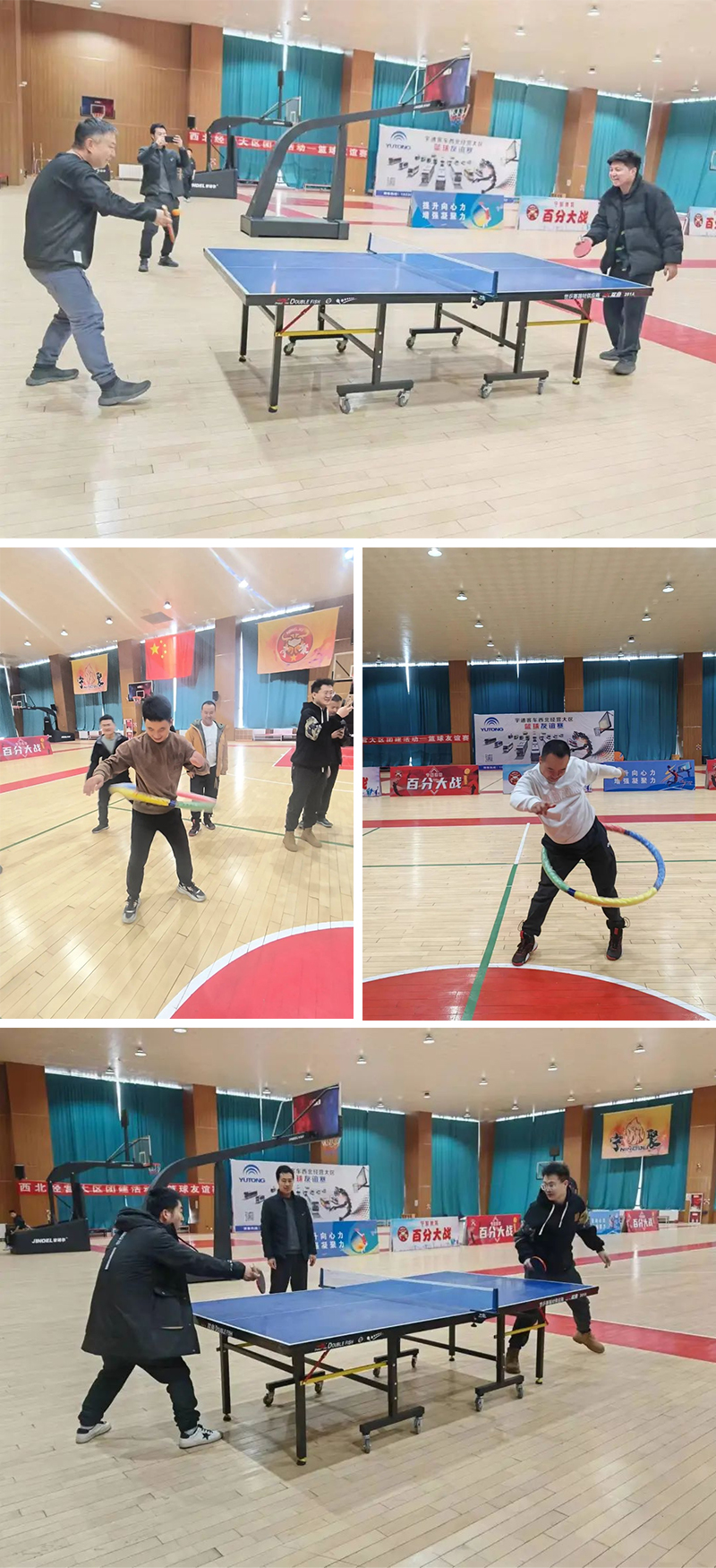 場內(nèi)職工之間比戰(zhàn)術(shù)、比技巧和比速度,場外加油聲、歡呼聲和鼓掌聲此起彼伏。